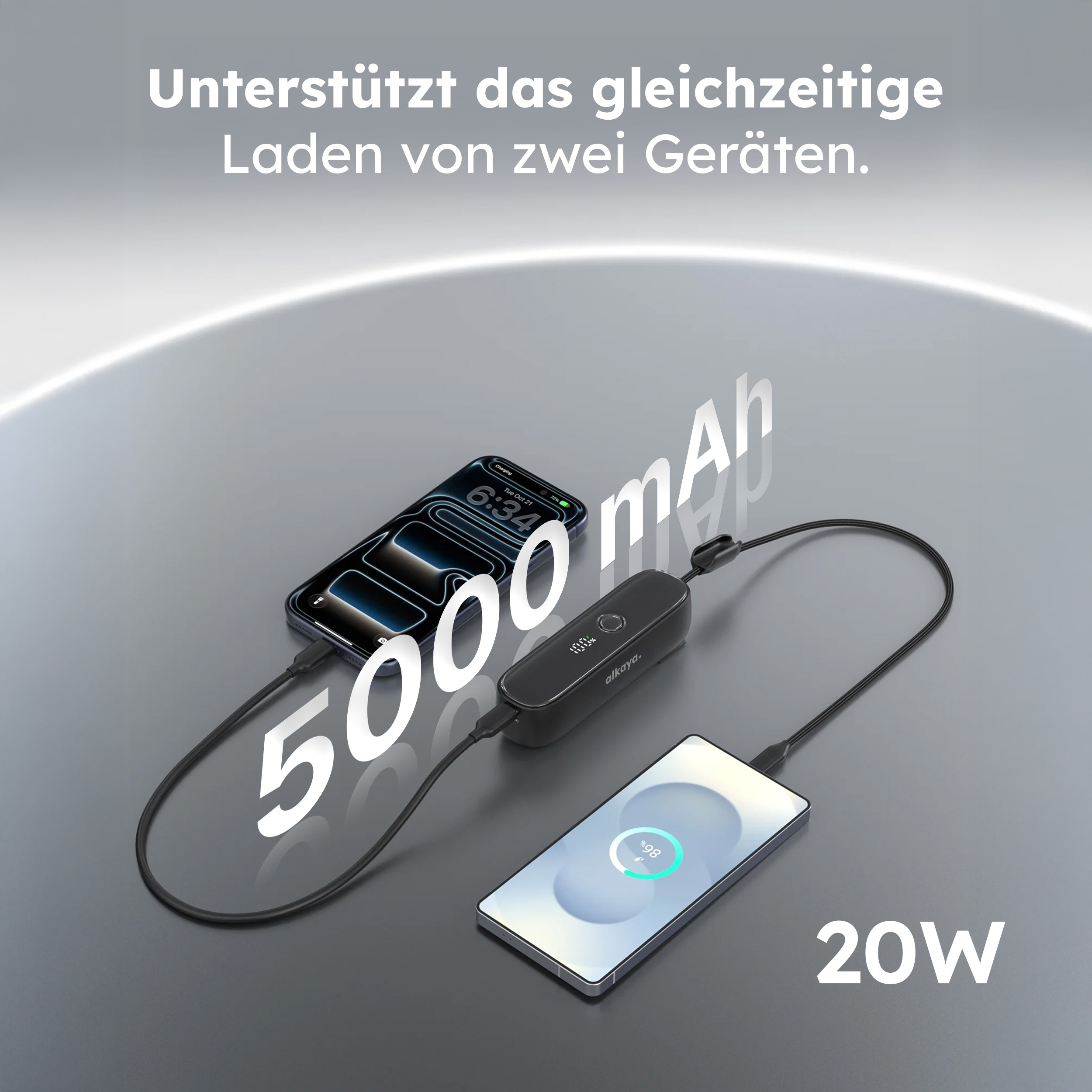 alkaya. | Hybrid Charger 5.000 mAh Powerbank mit Stecker 2in1 & Wall Charger, USB-C 22W Super Fast Charging